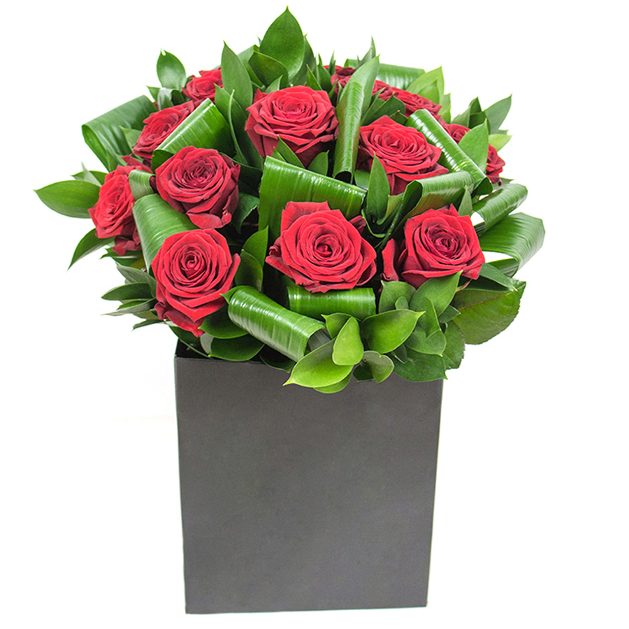 Our sophisticated red rose arrangement blends vibrant roses with lush greenery for a truly elegant display.